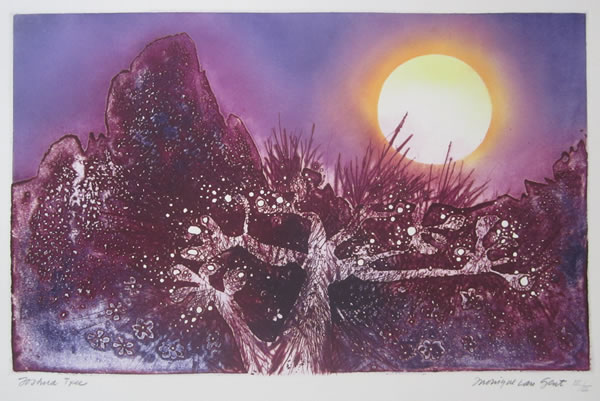 It is full moon in the Joshua Tree Desert in California. It seems we are on the moon itself. Only the Joshua Tree blossoms tell us we are on earth.